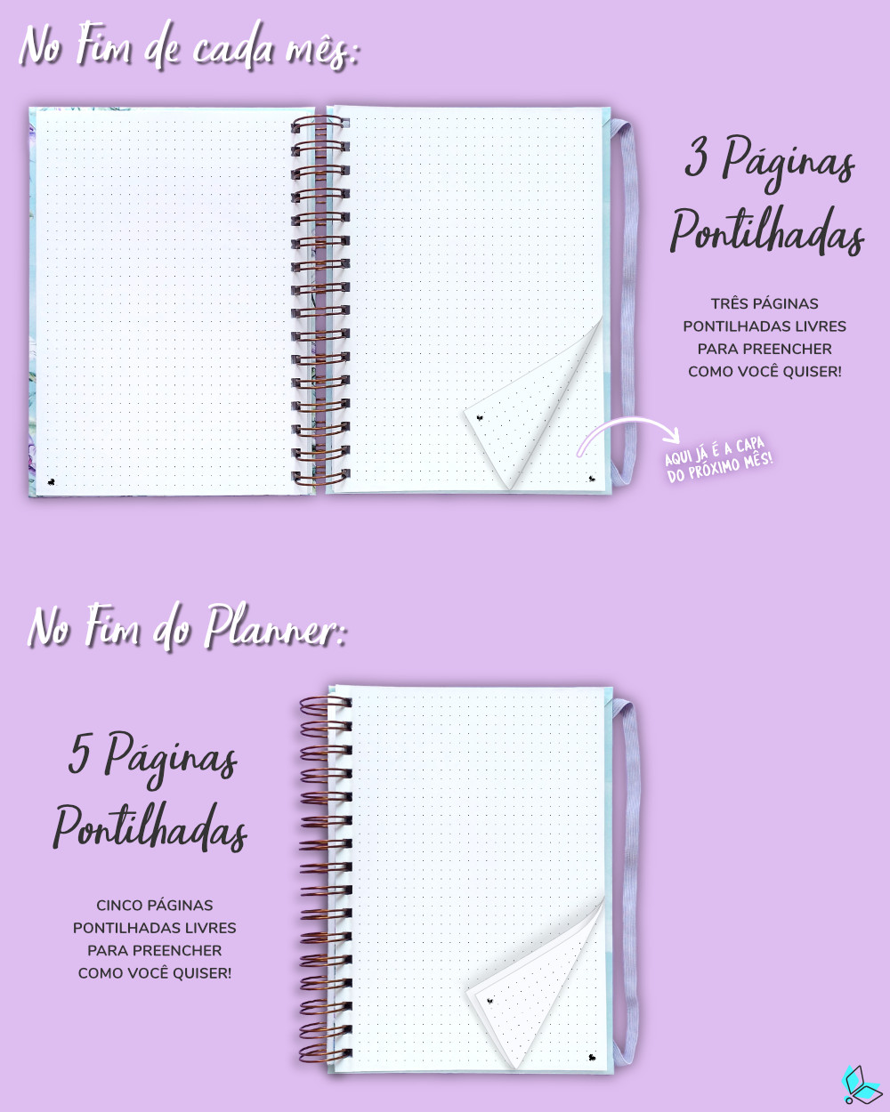 - 5 PÁGINAS PONTILHADAS LIVRES, no fim do planner